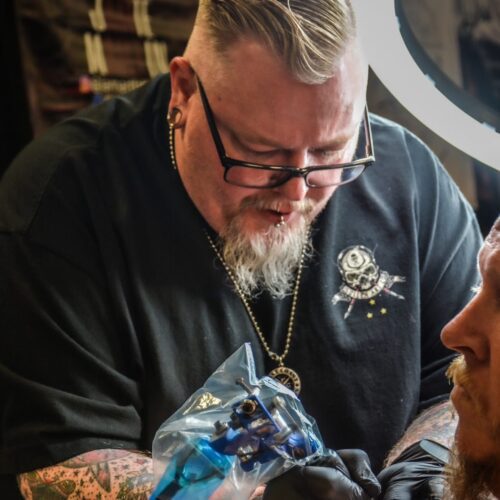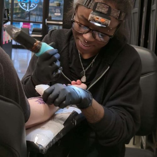 Our shop is 7,500 square feet and houses over 17 tattoo artists and 3 piercers.